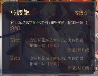 技能:对目标造成210%的伤害,附加一层「灼伤」buff。