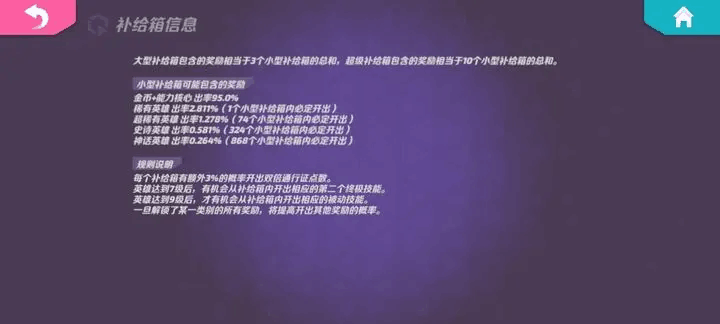 宝箱可以开出稀有(绿色边框),超稀有(蓝色边框),史诗(紫色边框)和神话品质(金色边框)的英雄,具体机制如下