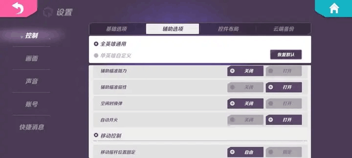 辅助瞄准阻力,如果玩奥萨斯和花翎推荐打开,其他情况推荐关闭。磁性最好打开,它可以让你有点锁敌(官方外褂了属于是)。空闲换弹我觉得就强尼最适合,其他情况推荐关闭。自动开火最好打开,如果玩风间隼、强尼、克里斯蒂娜推荐关闭。