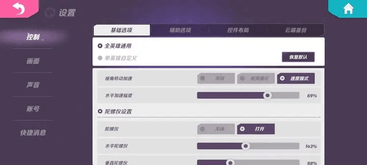转动加速推荐选速度模式。陀螺仪最好打开,不然手搓很累的,有时与大佬的差距就在转动视角就上,陀螺仪可以很好的改善这一点。
