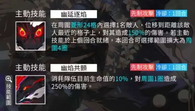 哈提的主动技能1是一个位移技能,菱形24格其实就是菱形12格的范围再扩大一圈。