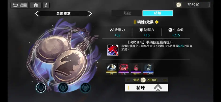 哈提的精炼1提高了装备的加成,从最大50%的加成提高到了60%。