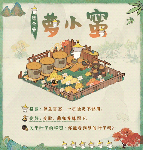 都说“萝生百态“,一层脸皮不够用,萝小蜜古灵精怪的性格都隐藏在养蜂帽下,甚至每天偷偷变化脸色,真是俏皮可爱~ 你猜今天萝小蜜的脸,是什么颜色呢?