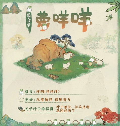 跟其他小萝北不同,萝咩咩平时性格和羊毛一样柔软,是一只视觉上有点弱气的小萝卜。虽然看上去软萌可爱,但令人意想不到的是——它其实是萝萝山的短跑冠军噢。平日里除了与小羊羔为伴外,还最喜欢玩滚铁环来锻炼脚力。
