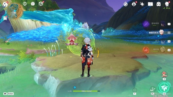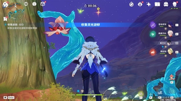 8.我们还是和前面一样,先利用斯露莎将四叶印的位置放好,然后拾取天上的浮游