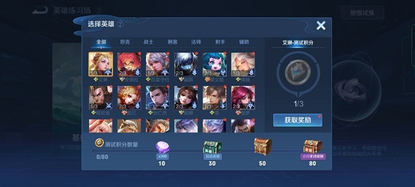 2. 在英雄练习场模式下进行氛围仿真练习与能力测试有助于玩家更好地理解、实践与把握自身熟练度较低的英雄并可根据测试积分解锁各种奖励;