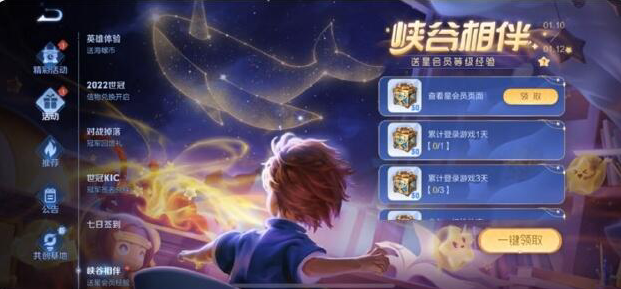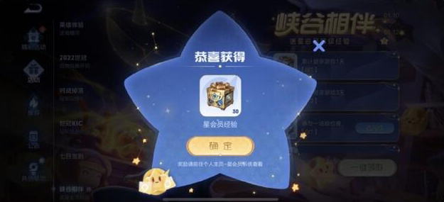 活动常驻入口:活动中心-活动-【峡谷相伴】-送星会员经验