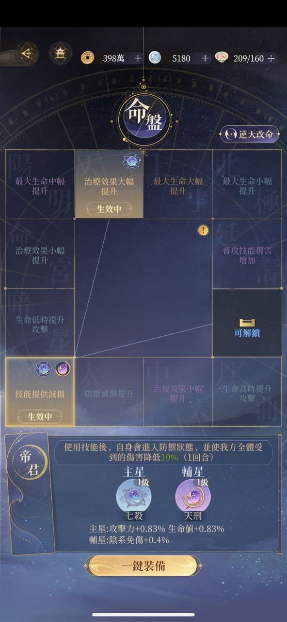 理论上白虎可以替换成郭解,但白虎有增减伤&被动回血(增加容错率),所以这边用白虎还是比郭解好用,如果郭解有降攻/不反击减伤/不退场星盘的人可以试试看。