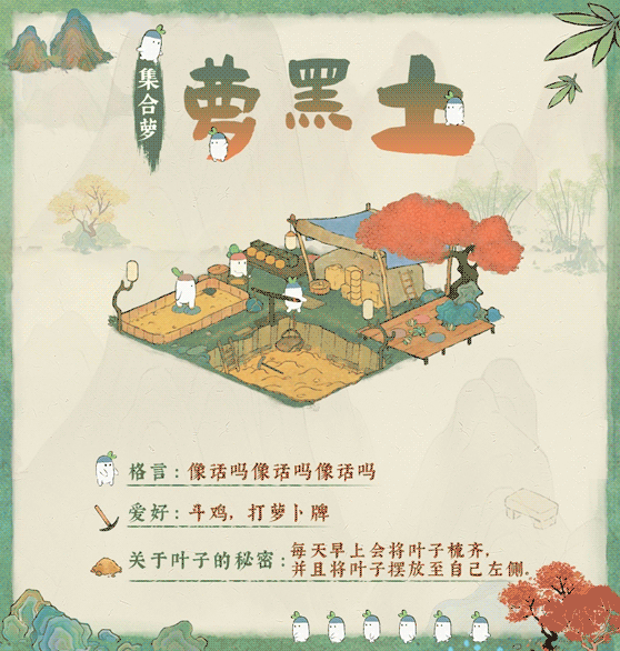 小萝卜图鉴更多+萝小腊萝小糖萝小刀萝小豆萝小磨萝小腐萝大腐萝小蜜萝小茧萝咩咩萝小嘎萝小满以上就是手游巴士为您提供《桃源深处有人家萝黑土是谁 桃源深处有人家小萝卜图鉴一览》的详细内容,更多精彩内容请继续阅读上一篇《崩坏星穹铁道青雀带什么遗器 星穹铁道青雀遗器推荐》2023-04-21 三国志战棋版乐善好施战法怎么样 乐善好施战法分析