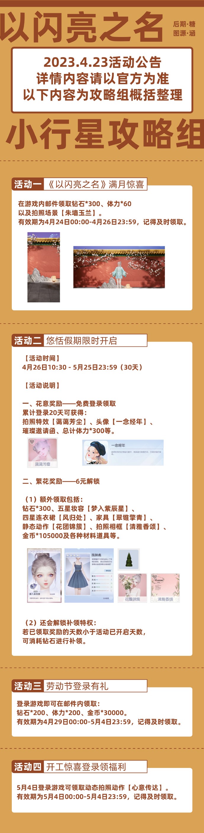 以上就是以闪亮之名4.23活动公告总结全部内容,希望能为各位玩家们带来帮助,想要了解更多游戏攻略及资讯请持续关注多特游戏。