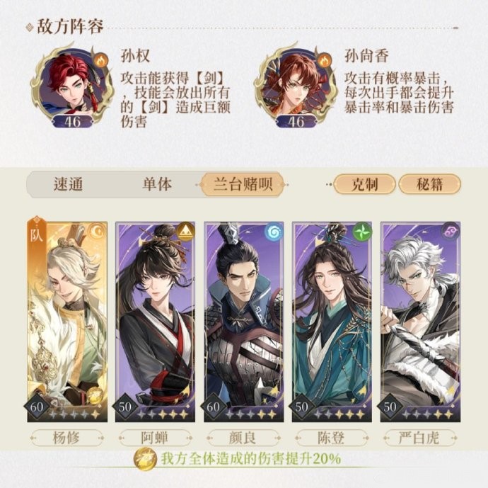 关卡攻略更多+历练7通关攻略5-25攻略5-24怎么打5-23攻略5-10怎么打兰台20层难度2风火六攻略5-12不赌无王粲通用阵容主线5-12材料关风火六5-12攻略