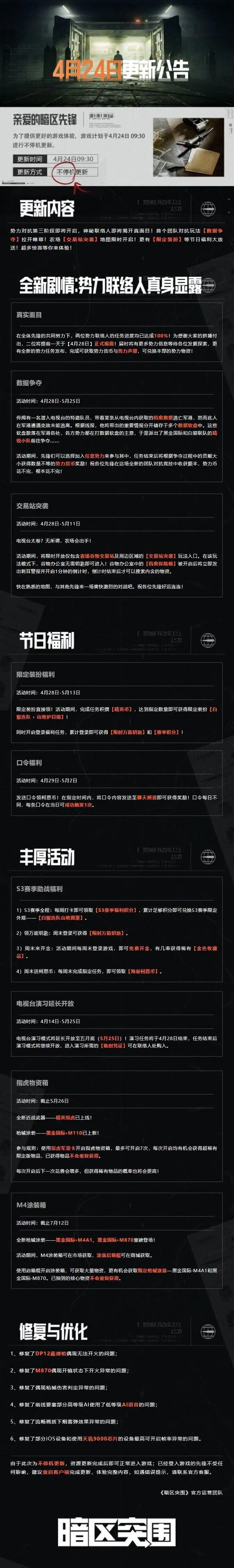2023-04-25 暗区突围4月24日更新公告是什么 暗区突围4月24日更新公告分享