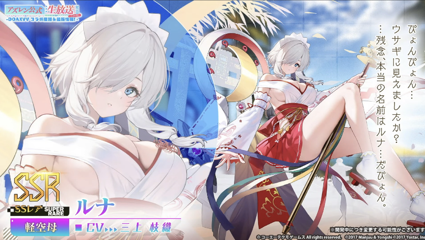 二次元化后的造型看着还不错,很符合碧蓝航线中的人设,走的是纯粹的巫女风格特色,这个坐姿和造型,感觉和隔壁阴阳师的SSR铃彦姬有点相似,对于原本的3D形象来说,各有特色,希望这次的作为轻航,她强度能靠谱点吧,最好有奶人的能力。