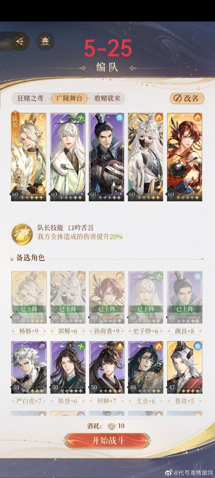 关卡攻略更多+历练7通关攻略5-25攻略5-24怎么打5-23攻略5-10怎么打兰台20层难度2风火六攻略5-12不赌无王粲通用阵容主线5-12材料关风火六5-12攻略