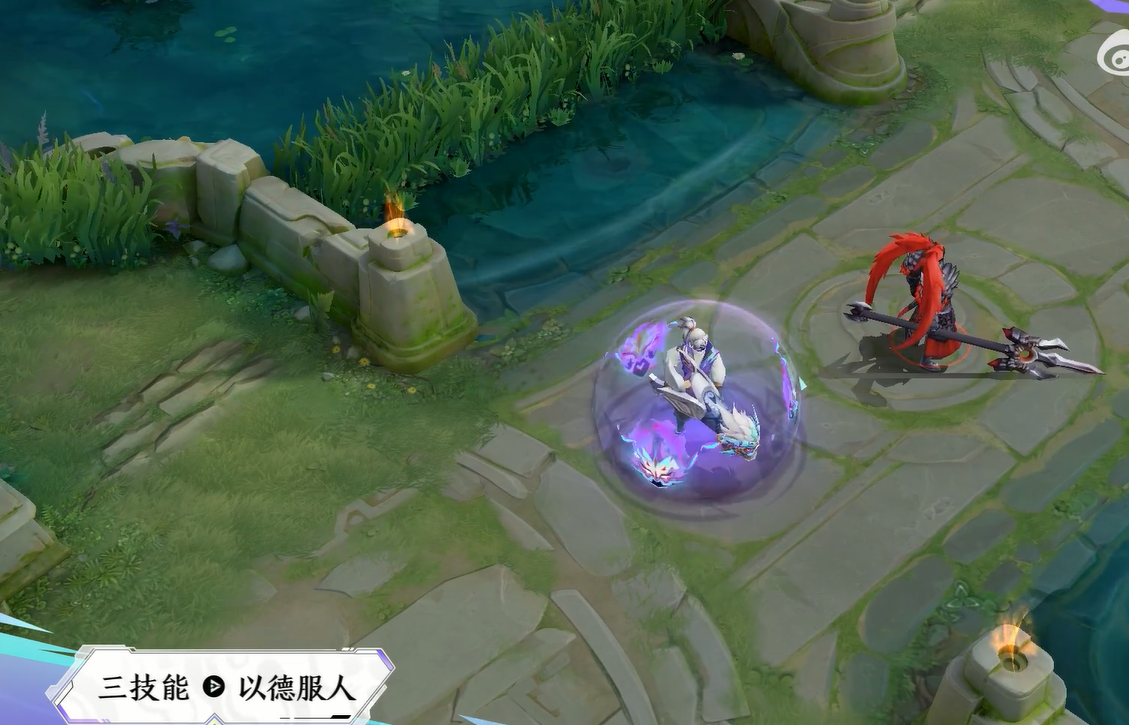 在形象的绘制上,展现刘备作为长兄,即将戴上百相脸谱加入局战斗的场景,突出人物沉稳冷静的性格特质。身后的梦马与化身雄狮灵兽的张飞已蓄势待发,同时,增加玫红与浅蓝相间的特效表现,给相对静态的画面增加了战斗感。
