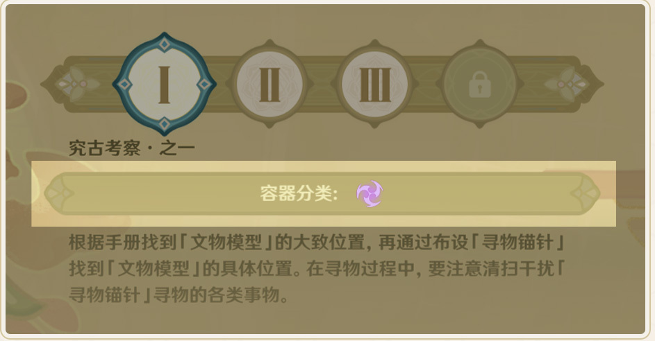 在开始探测前,旅行者还可以通过查看装有文物模型的容器分类,来预测此区域内可能存在的干扰物。