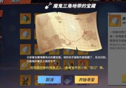 2、记录着宝藏埋葬地点的藏宝图,地形似乎被制作者隐藏了,无法识别,只能隐约看见上面的文字:在阴森恐怖的海面上,缓缓张开的一张“巨口”旁。