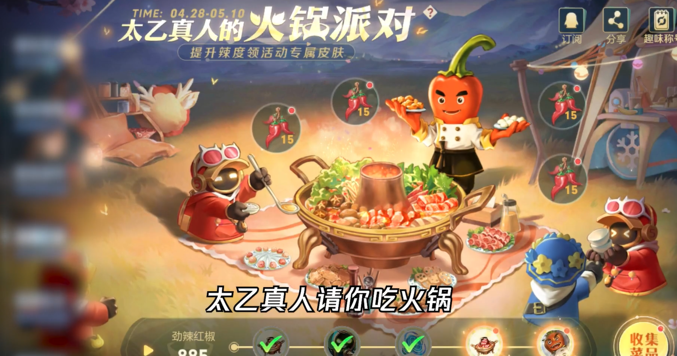 收集劲辣红椒,免费兑换太乙真人劲辣红锅皮肤;
