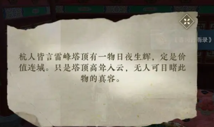 界面下方传闻显示位置是在雷峰塔顶。
