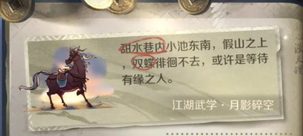 甜水巷这里(1177,846)有一个瓷瓶,是可以打碎的,打碎后可以获得一个纸条