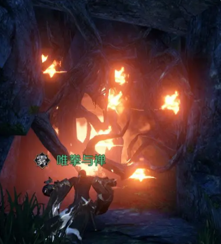 山洞门口有树枝,用火系技能烧掉,烧完之后进洞会有一个boss,打死掉落。