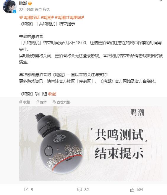 2023-05-06 鸣潮共鸣测试什么时候结束 鸣潮共鸣测试结束时间
