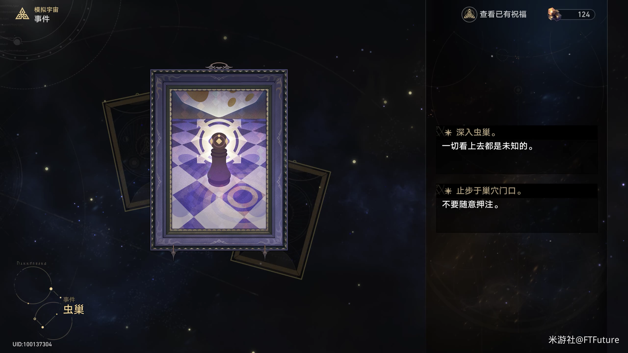 ·如果选择「止步于巢穴门口」的话,事件就会结束,并获得100宇宙碎片;如果选择「深入虫巢」的话,会继续事件,进入后续的选择,如下图所示: