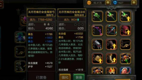 3、腰带,项链,戒指之外,每件装备都有能量值,并且可以进行调整。