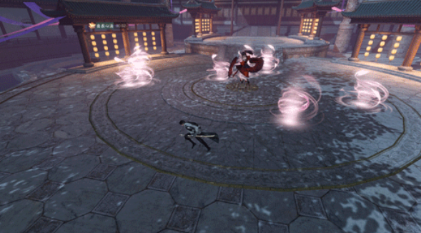 红袖向一个位置跳去,随后释放一段踢击和回旋踢,对周围玩家造成大量伤害,需要注意站位,及时远离。