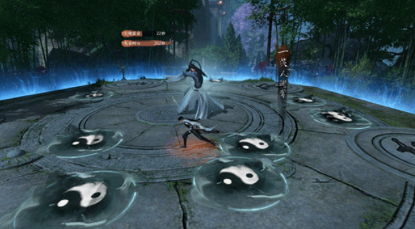 雷音的扇形攻击技能一笑人间掌,持续对前方打出音波后,最后一击还会在场地的大量位置生成八卦。八卦在短暂时间后便会引爆,对站在上面的玩家造成巨额伤害。