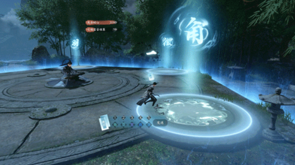 随后雷音会给六名玩家发送代表顺序的数字。头上出现数字的玩家,需要根据琴谱的顺序,站位对应的五音位置上。