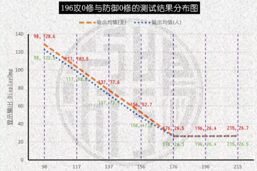 召唤兽不破防输出 = 0.13*攻方召唤兽攻击 = 0.13*196 = 25.48