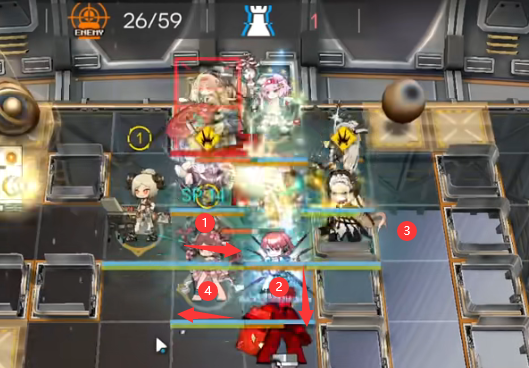 ① 如图所示顺序部署推进之王 → 浊心斯卡蒂 → 铃兰 → 闪灵