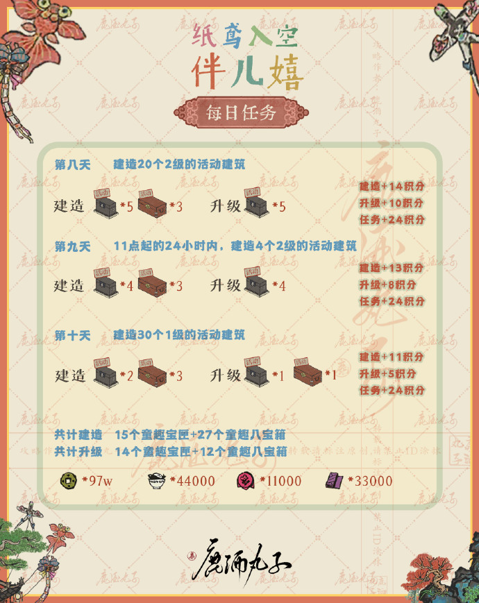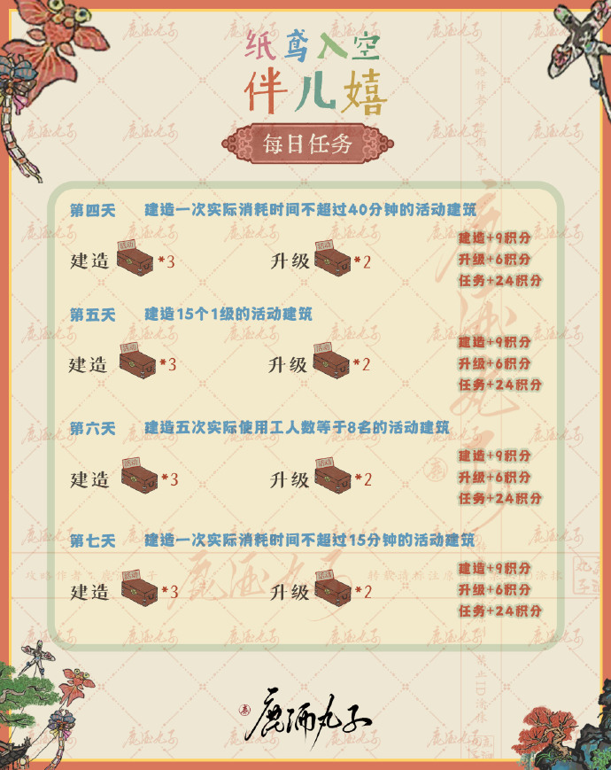 每日任务完成&建筑建造升级仅为@鹿酒丸子 个人活动方案规划,仅作参考,答案不唯一