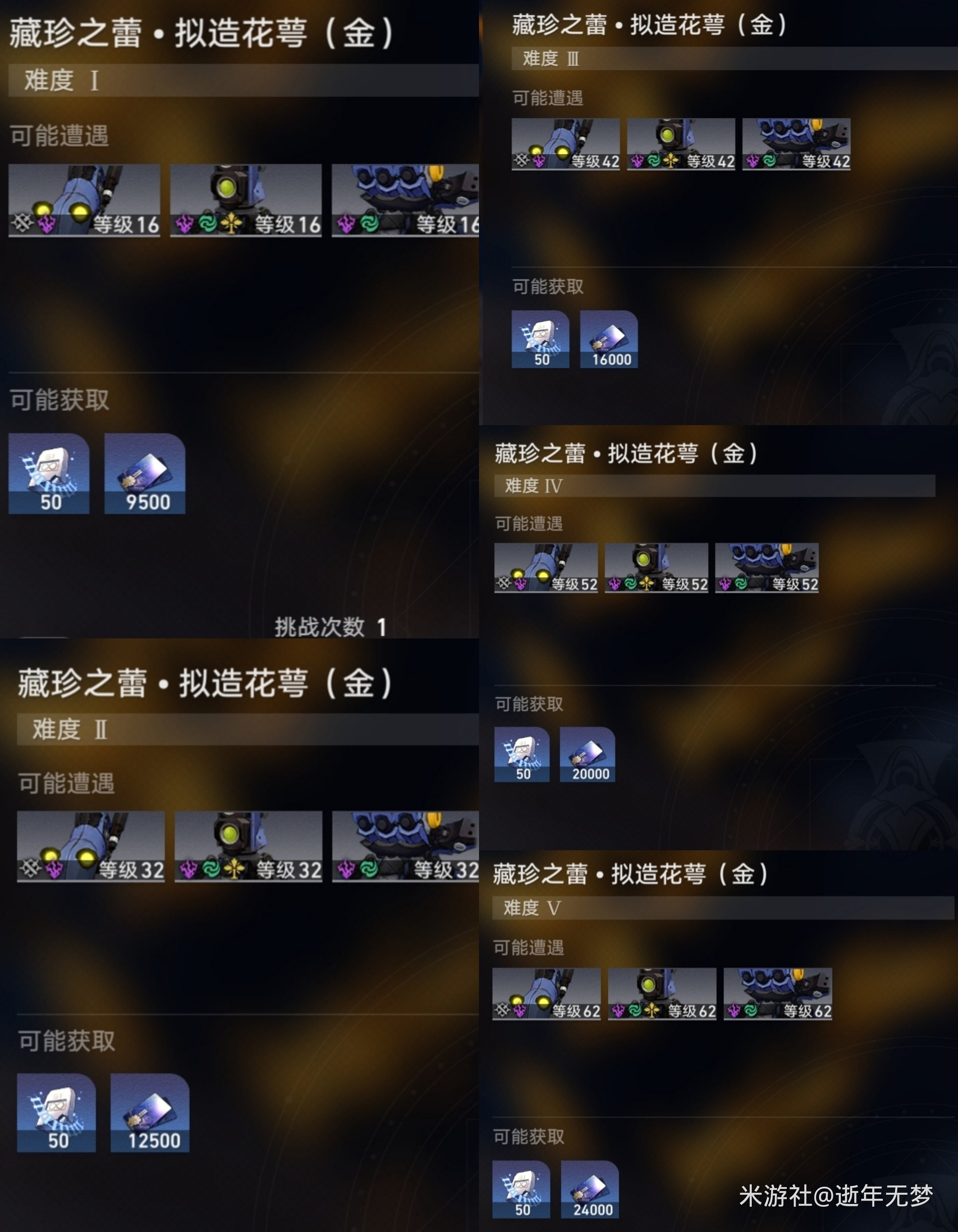 4,经验书可通过拟造花萼金获取,第五难度打一次收益如下。