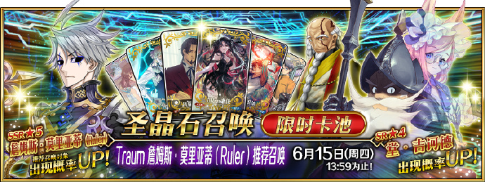 本次即将开启的卡池是Traum 詹姆斯·莫里亚蒂(Ruler)推荐召唤