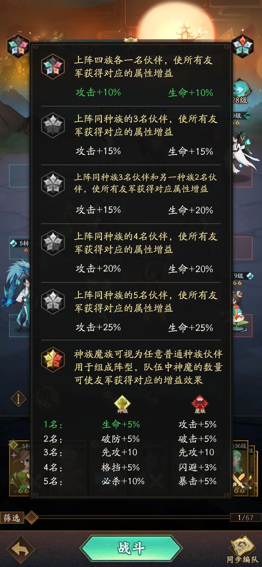 游戏内遵循人克仙,仙克妖,妖克鬼,鬼克人,神魔互相克制的关系,当产生种族克制时,攻击会造成额外伤害。