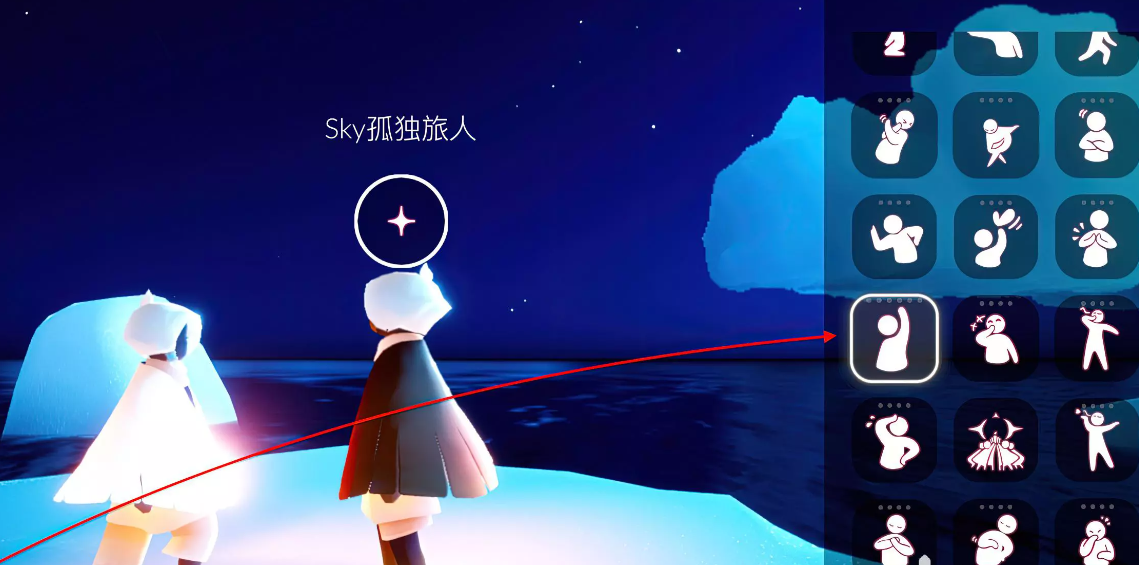 点击屏幕上方中间动作栏 找到招手动作 面对好友 点击并完成即可