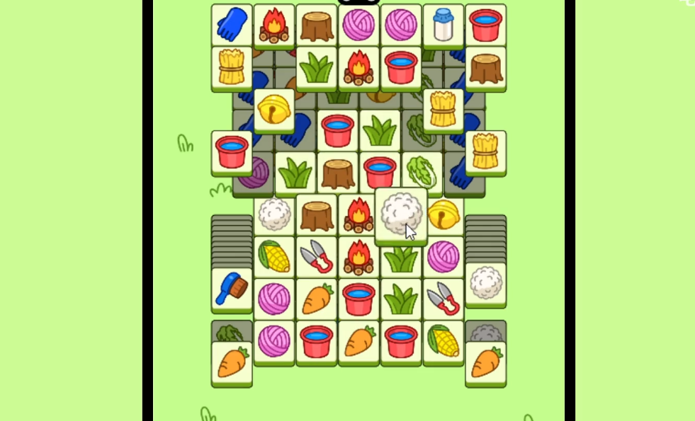 2、同层可以三消的就先消除同层,没有的话就需要查看下一层的物品,然后将需要的物品的上方的道具放置到槽中获得下方的道具。