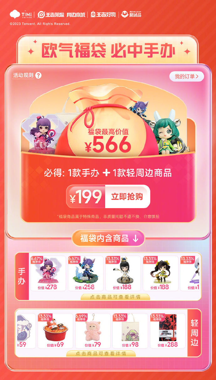 嗨购福袋限时登场,福袋内必得1款手办+1款轻周边;