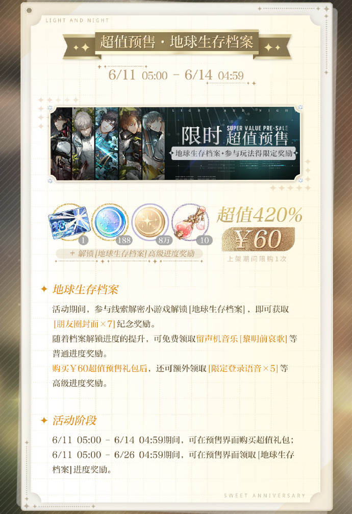 2023-06-12 光与夜之恋周年福利有什么 光与夜之恋二周年特惠礼包一览