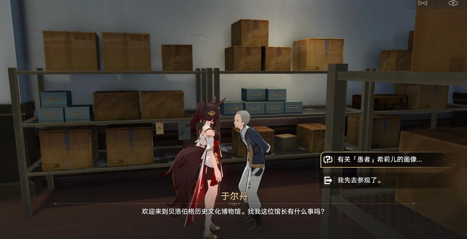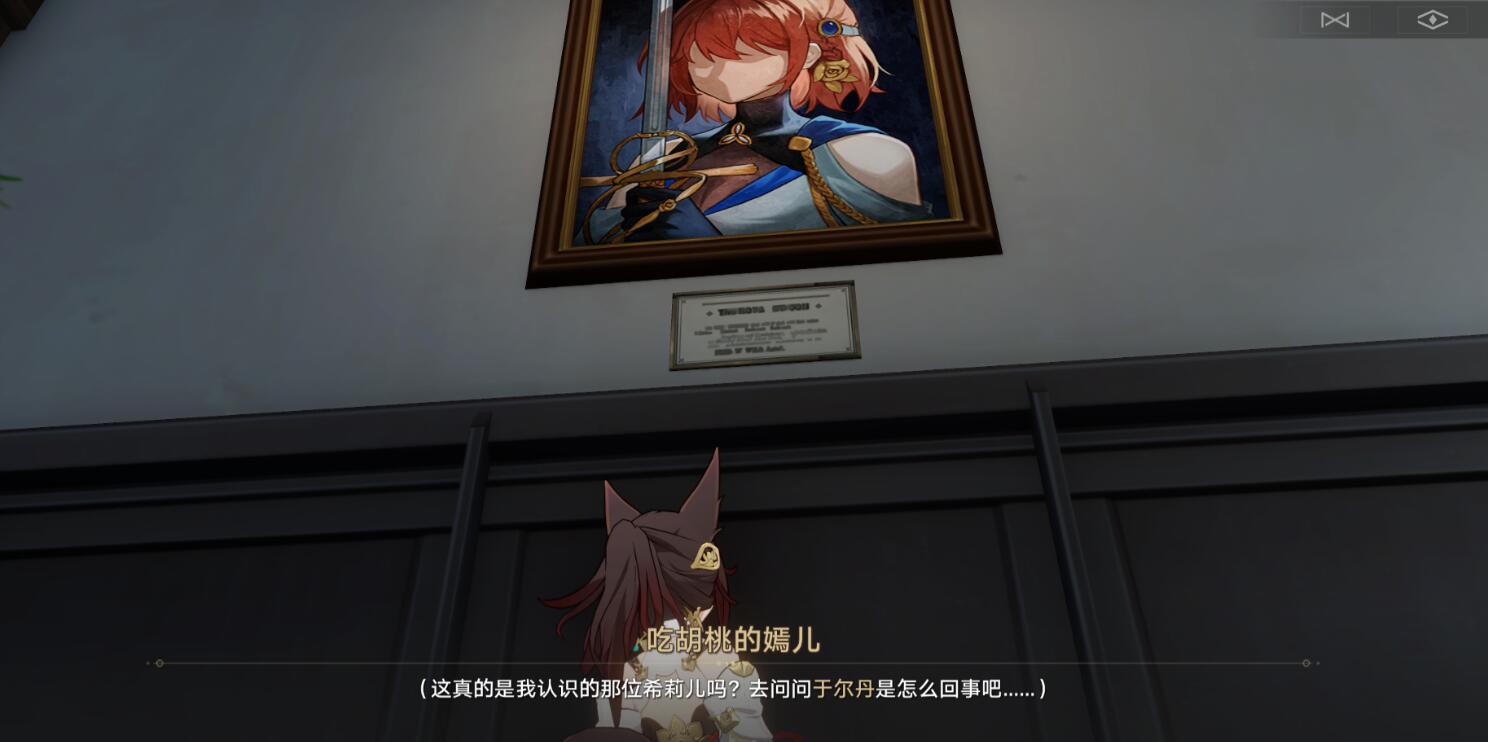 3.看完介绍后来到【博物馆前台】右手边那间房,找到馆长【于尔丹】,对话(有关愚者希莉儿的画像)。