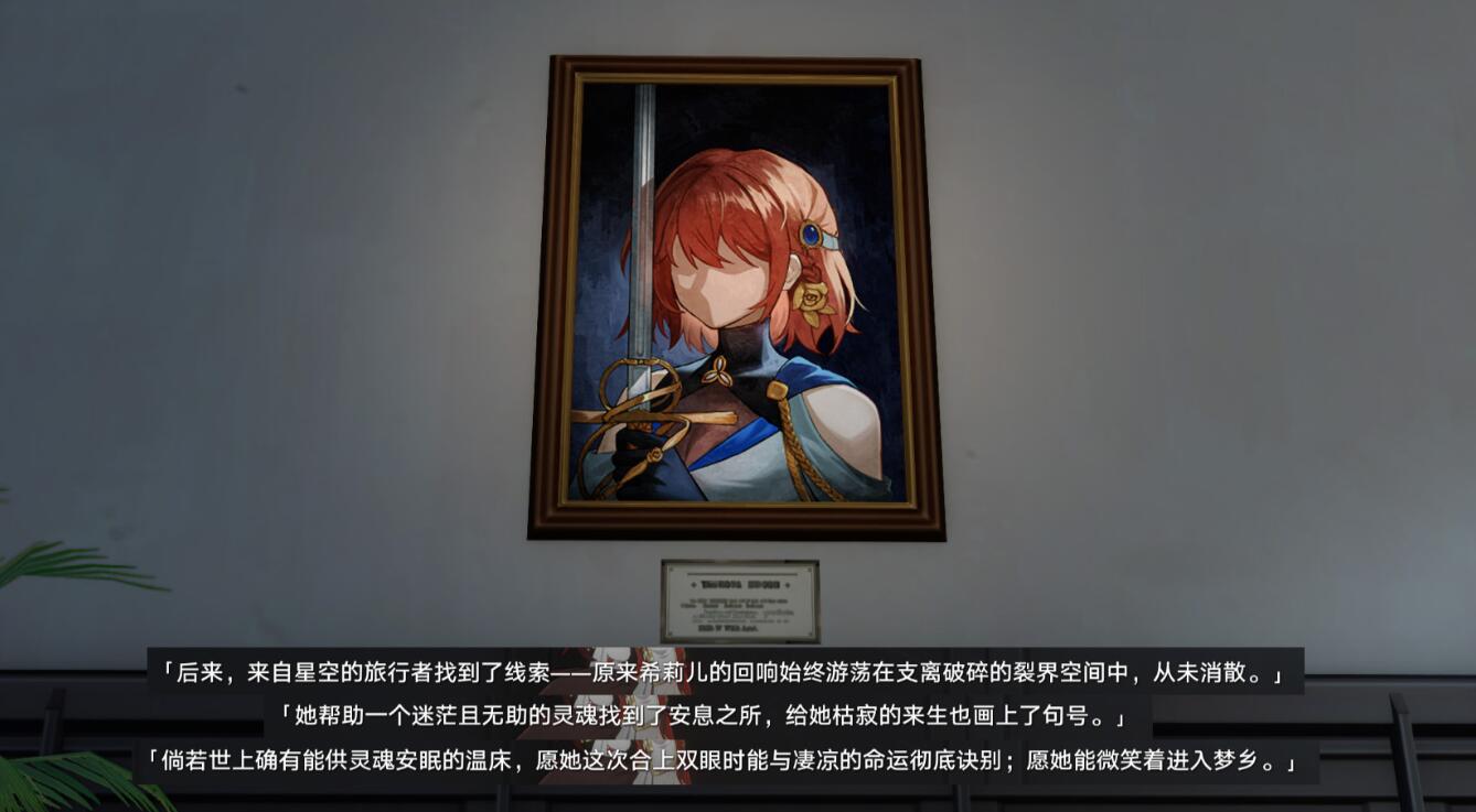 5.之后,我们再回到【历史区】,点击那幅画交互。我们会惊喜的发现,希莉儿的文案最后,补充了这么几句话(也算是给到希莉儿这条线一个比较圆满的结局了)