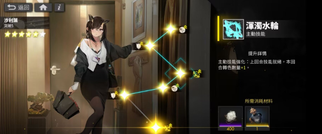 连锁技能是对周围敌人造成多段攻击,对同一目标造成多段伤害时,从第二次攻击开始每段伤害减半。但配合沙利叶装备技能增加的坦度,能抗能打能群能转色的她依旧是前期最万金油的光灵之一。