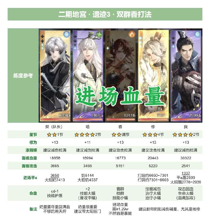 ①若第三回合群香平a均无暴击,阳小兵大概1w2血,修的大留给阳兵,其余都a阳boss.