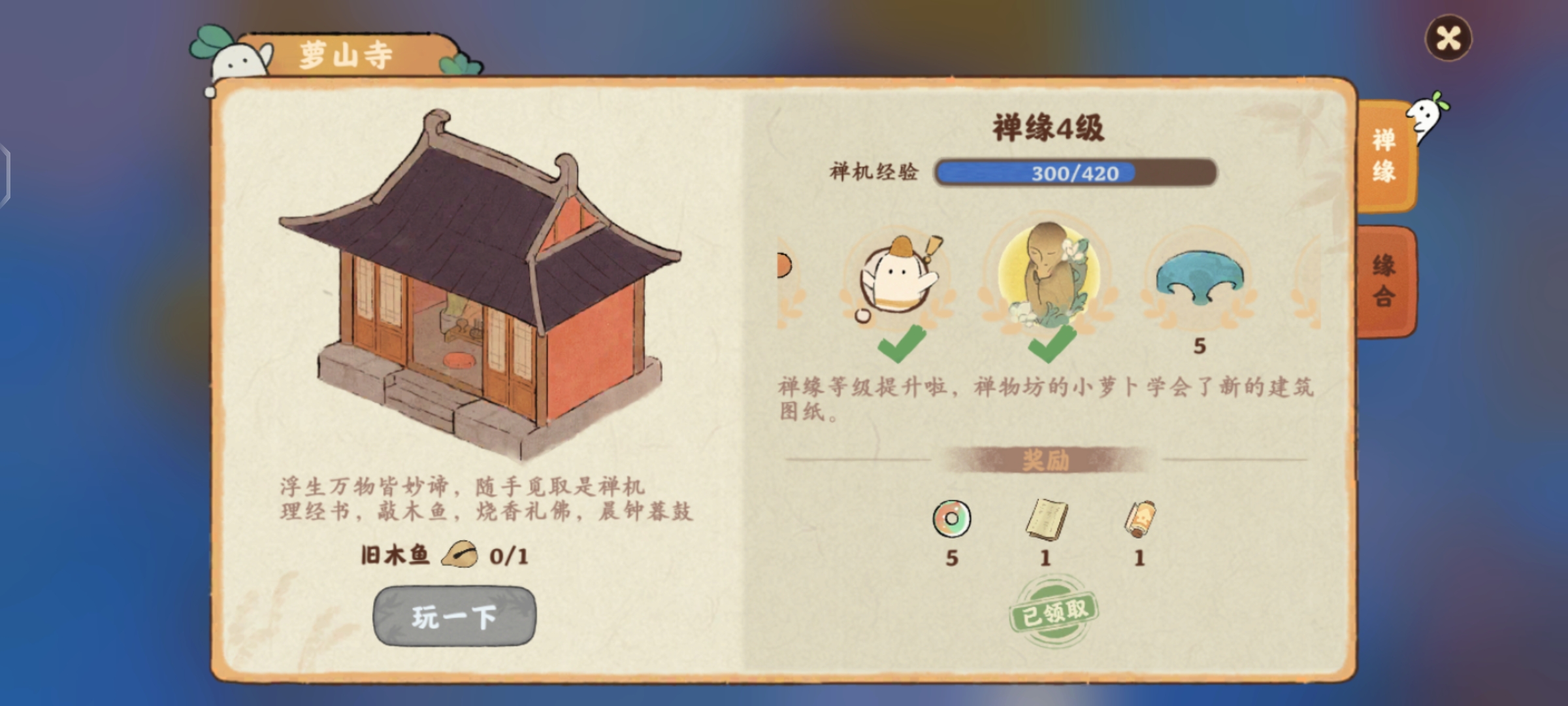 以上就是关于桃源深处有人家禅缘等级怎么提升的全部内容了,希望能为各位玩家们带来帮助,想要了解更多游戏攻略及资讯请持续关注多特游戏。