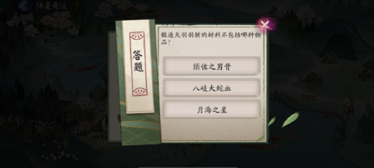 热门标签新手攻略活动玩法式神介绍以上就是手游巴士为您提供《锻造天羽羽斩的材料不包括哪种物品 阴阳师端午答题第四天答案》的详细内容,更多精彩内容请继续阅读上一篇《白夜极光卓娅怎么样-白夜极光卓娅值得培养吗》2023-06-24 锻造天羽羽斩的材料不包括哪种物品 阴阳师端午答题第四天答案