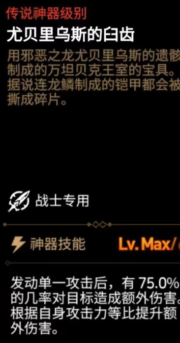 神器的效果非常强,神器的技能1,它可以自动发出单体伤害,有50%的几率对敌人造成额外的伤害,而且可以给宿主增添额外的加成。