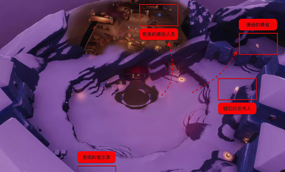 前往 [圆梦村剧场] 重温剧情任务四 任意选择三位先祖牵手即可