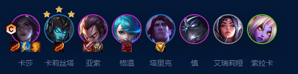 针对高费卡为主C的阵容。一般情况下2-1升4,2-5升5,3-2升6,4-1/4-2升7。前期尽量用强势棋子与羁绊打工,保证打工棋子2星,进而稳定血量健康。尽量使用利息升级,步入7与8阶段,7级、8级替换低费打工卡,向以4-5费棋子为核心阵容转型。